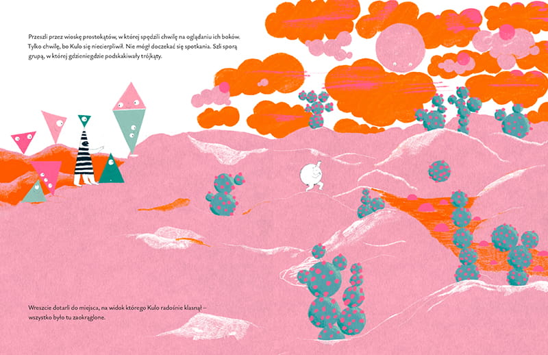 "Na pewno gdzieś na świecie są istoty – rozmyślał Kulo – które chciałyby się ze mną poturlać. Najlepiej żeby były okrągłe jak ja. Muszę je odnaleźć".