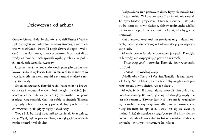 Siódma książka o Tsatsikim. Można ją czytać, nie znając poprzednich. Jeśli jednak interesują was wcześniejsze przygody Tsatsikiego, znajdziecie je w tomach: Tsatsiki i Mamuśka, Tsatsiki i Tata Poławiacz Ośmiornic, Tylko Tsatsiki, Tsatsiki i miłość, Tsatsiki i Retzina oraz Tsatsiki i Per. Przeczytacie w nich o tym, co się działo w pierwszej, drugiej, trzeciej, czwartej i piątej klasie, a także o wcześniejszych wakacjach Tsatsikiego w Grecji.