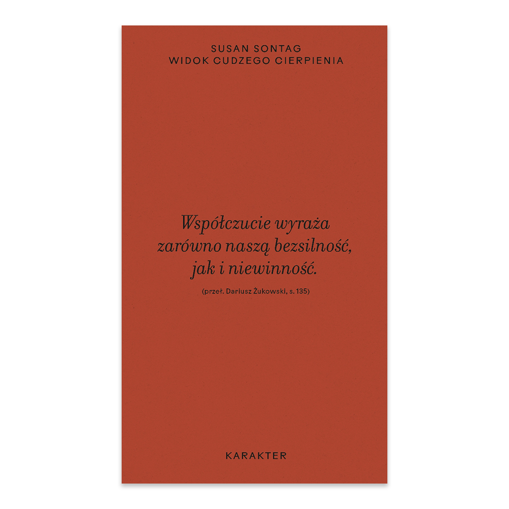 Susan Sontag - urodziła się w 1933 roku, zmarła w roku 2004. Jedna z najważniejszych intelektualistek dwudziestego wieku. Jej znakiem rozpoznawczym były zawsze niezależność myśli i pełne pasji zaangażowanie. Autorka ważnych tekstów, które podważały przyjęte sposoby myślenia i wyznaczały nowe horyzonty humanistyki: Przeciw interpretacji, O fotografii, Zapiski o kampie, Choroba jako metafora. Pisała także powieści, m.in.: Zestaw do śmierci, Miłośnik wulkanów, W Ameryce. Obrończyni praw człowieka, występowała przeciw wojnie w Wietnamie, w czasie stanu wojennego wspierała "Solidarność", a w 1993 roku w oblężonym Sarajewie wystawiła "Czekając na Godota". Zawsze niepokorna, odważna i nieznosząca schematycznych uproszczeń, w ostrym tekście sprzeciwiła się propagandzie uprawianej przez rząd Busha po atakach z 11 września.