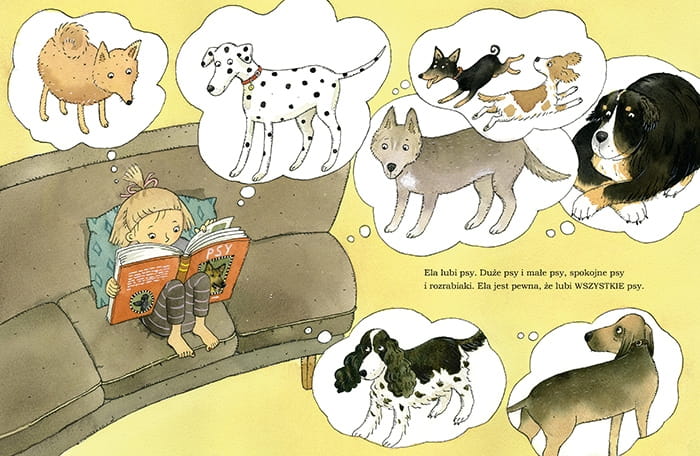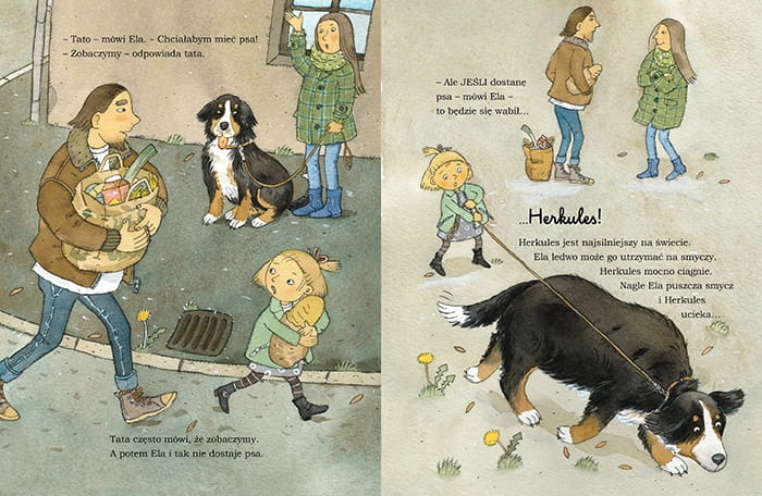 Ela lubi naprawdę wszystkie psy: duże psy i małe psy, spokojne psy i rozrabiaki. Ela tak bardzo chciałaby mieć własnego psa! Ale tata ciągle mówi, że zobaczymy, a potem i tak się nic nie dzieje. Aż któregoś dnia...