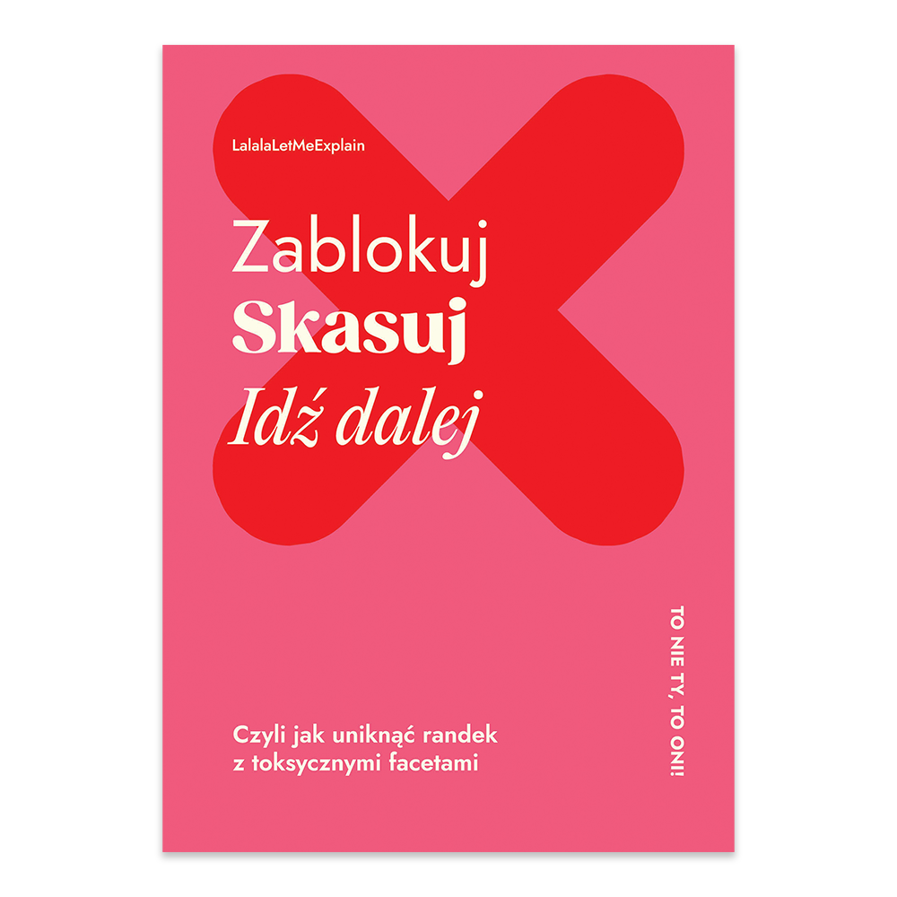 "Zablokuj, skasuj, idź dalej" to przewodnik, który pomaga unikać toksycznych relacji, rozpoznawać sygnały ostrzegawcze i budować w sobie siłę potrzebną do walki o własne potrzeby. Książka jest pełna praktycznych wskazówek, jak unikać wykorzystania i szkodliwych relacji oraz jak zerwać, gdy sytuacja staje się niezdrowa.
