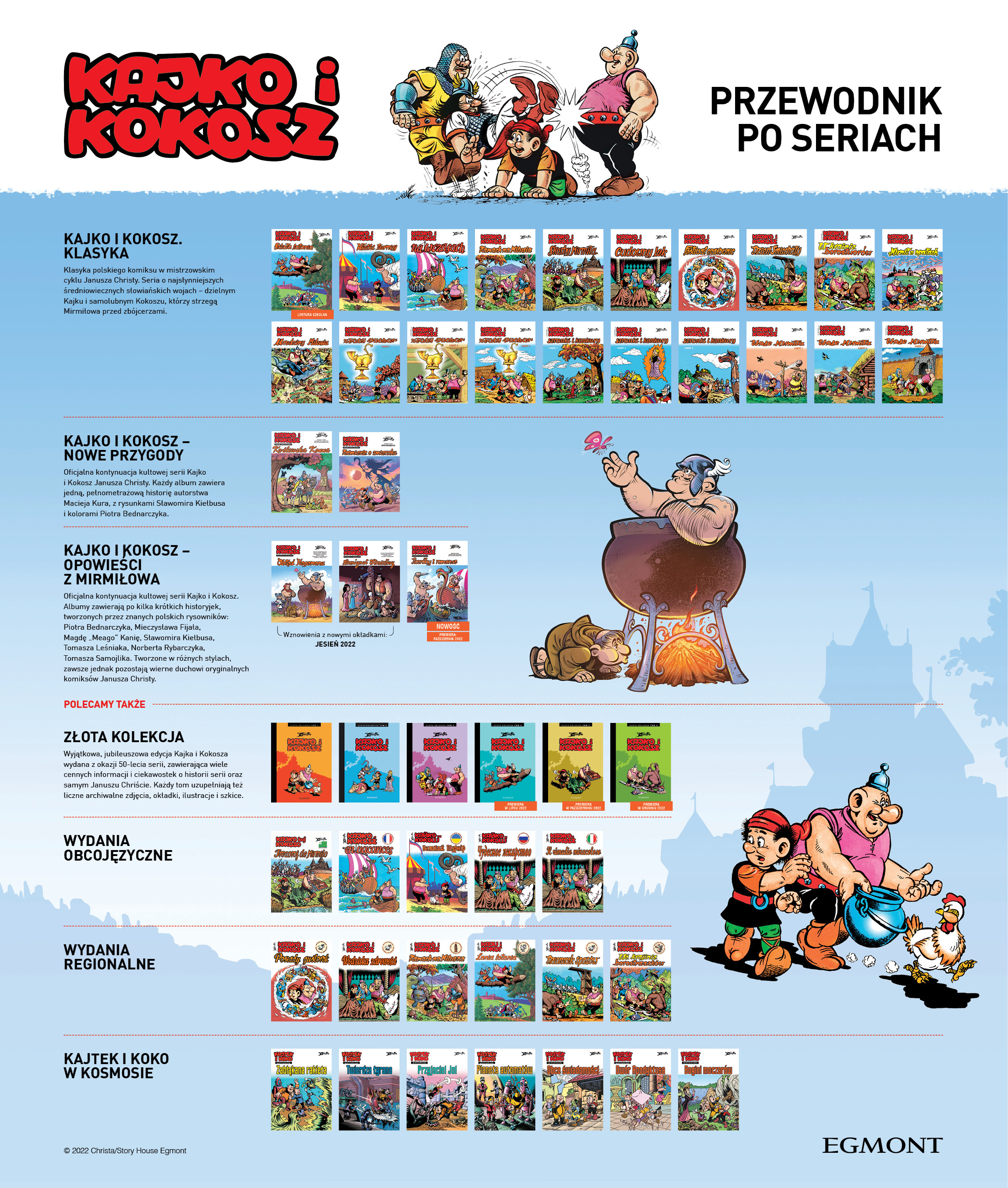 Kajko i Kokosz pojawili się na łamach trójmiejskiej popołudniówki „Wieczór Wybrzeża” w 1972 i stali się jednymi z najbardziej rozpoznawalnych bohaterów polskiej popkultury. Cykl Janusza Christy (1934–2008) opowiada o dwóch wojach – dzielnym i rozważnym Kajku oraz żarłocznym i nieco samolubnym Kokoszu, którzy bronią Mirmiłowa oraz przeżywają mnóstwo zabawnych przygód.