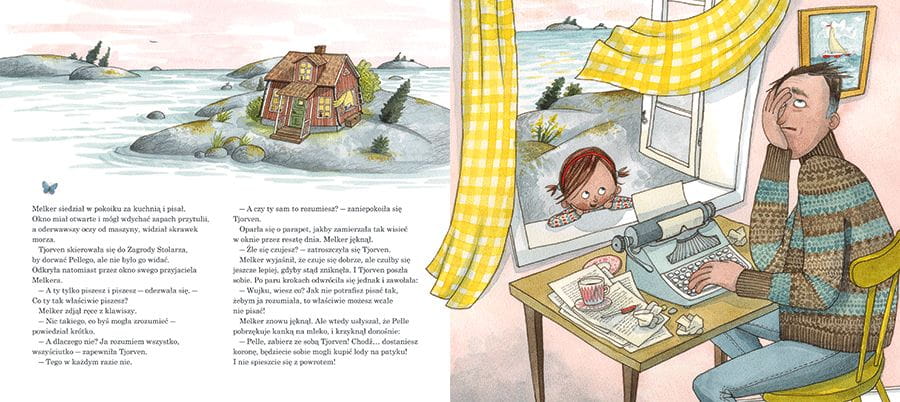 Historia, pochodząca z książki Astrid Lindgren o dzieciach z wyspy Saltkrakan, została na potrzeby książki obrazkowej pięknie zilustrowana przez Marię Nilsson Thore. Ta wakacyjna opowieść jest pierwszą z pięciu książek o wyspie Saltkrakan, które ukażą się w Wydawnictwie Zakamarki. Wyspa Saltkrakan to jedna z wielu wysp i wysepek w Archipelagu Sztokholmskim. Na niej właśnie, wraz wraz z rodzicami, rodzeństwem i psem Bosmanem, mieszka dziewczynka o imieniu Tjorven.