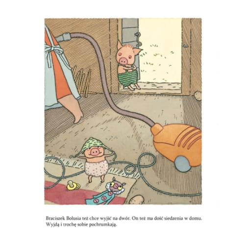 Obrazkowa trylogia o upartym prosiaczku Bolusiu należy do wpółczesnej szwedzkiej klasyki książek dla dzieci. Barbro Lindgren, laureatka Nagrody im. Astrid Lindgren (ALMA) z 2014 roku, którą znamy z książeczek o Maksie, oraz genialnie rysujący emocje Olof Landström niejednego rozbawią do łez swoim portretem dwulatka.