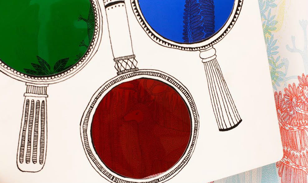 To nie jest zwykła książka. Obrazkowe cudeńko zaopatrzone zostało w trzy lupy: czerwoną, zieloną i niebieską. Wszystkie ilustracje zawierają tajemnice, które czytelnik może odkryć, używając tej właściwej. Każda rozkładówka ma w sobie pytania, a odpowiedzi ukryte są na obrazku. Aby je znaleźć, trzeba użyć lupy we właściwym kolorze.