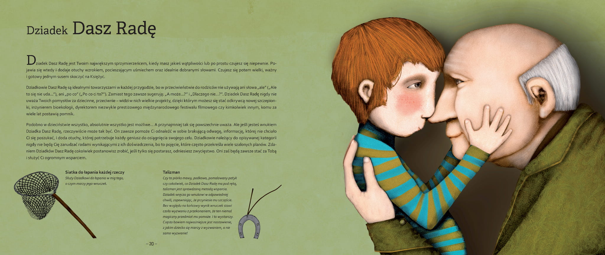 Jacy są Wasi Dziadkowie? Czy któryś z nich jest Dziadkiem Usypiaczem? Dziadkiem Superbohaterem? A może Dziadkiem Dasz Radę? Odszukajcie swoich Dziadków wśród trzydziestu typów Dziadków przedstawionych w tej książce.