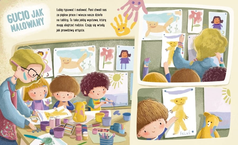 Razem z rodzicami przygotowuje się na to wydarzenie. Wspólnie wybierają plecak i kompletują wyprawkę. Chłopiec pakuje też swojego najwierniejszego kompana, misia Gucia – razem wyruszą w nieznane. Dowiedzą się, jak wyglądają sale, co będą robić, w jakich zajęciach i wydarzeniach będą uczestniczyć. Feluś ma mnóstwo pytań. Czy spotka znajome dzieci? W czym pomoże mu pani? A co będzie, jeśli nagle zatęskni za mamą?