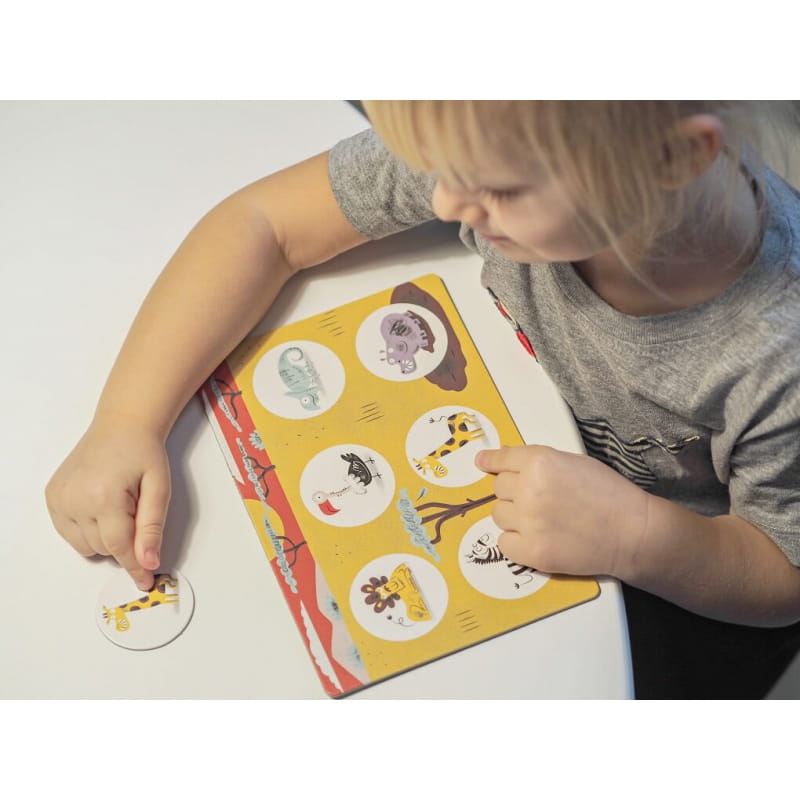 Gra rozwija umiejętność rozpoznawania i nazywania 36 zwierząt: mieszkańców afrykańskiej sawanny, arktycznej krainy lodu, wiosennej łąki, lasu czy wiejskiego gospodarstwa. Ćwiczy również spostrzegawczość, pamięć oraz koordynację oko-ręka.