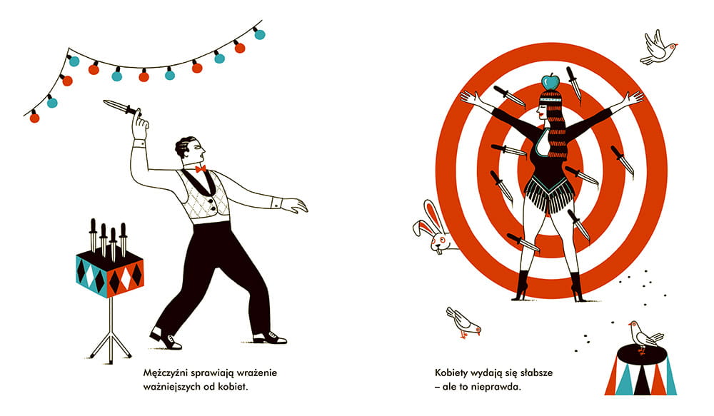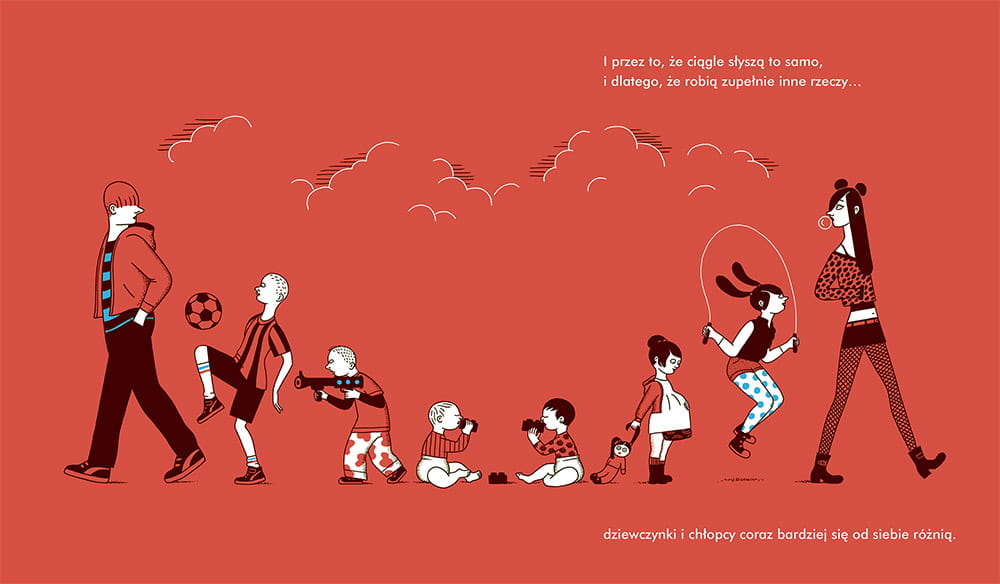„Kobiety i mężczyźni” – ostatnia część czterotomowej serii dla dzieci „Książki Jutra”. Wydana po raz pierwszy w Hiszpanii pod koniec lat siedemdziesiątych, dziś w nowej szacie graficznej, z ilustracjami Luci Gutiérrez, prezentuje wciąż świeże i aktualne spojrzenia na ważne zagadnienia społeczne.