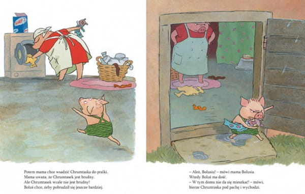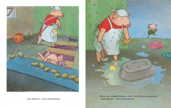 Obrazkowa trylogia o upartym prosiaczku Bolusiu należy do współczesnej szwedzkiej klasyki książek dla dzieci. Barbro Lindgren, tegoroczna laureatka Nagrody im. Astrid Lindgren (ALMA), którą znamy z książeczek o Maksie, oraz genialnie rysujący emocje Olof Landström niejednego rozbawią do łez swoim portretem dwulatka.