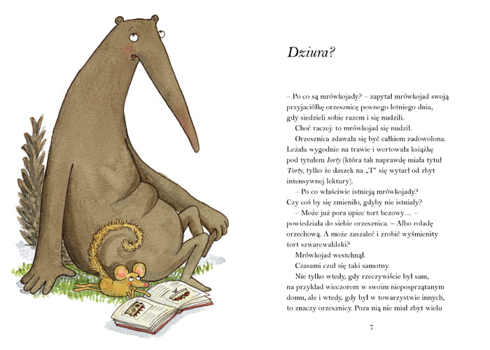 Sens życia to kolejna, po Dziwnych zwierzętach i Innej podróży, odsłona przygód sympatycznego mrówkojada i jego przyjaciółki orzesznicy. Mrówkojad zadaje sobie chyba najtrudniejsze pytanie na świecie: Jaki jest sens życia? Temat trudny, bez oczywistej odpowiedzi, a jednak szwedzka autorka się go nie boi. Wraz z kolejnymi stronami książki rośnie napięcie. Bo czy ostatecznie mrówkojad znajdzie odpowiedź na to filozoficzne pytanie? Nie zdradzamy, a odsyłamy do książki.