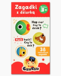 Pytania w formie rymowanych wierszyków i fragmenty ilustrowanych odpowiedzi, widoczne przez specjalne dziurki, sprawiają, że zgadywanie jest ekscytujące jak nigdy dotąd!