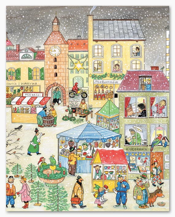 Nadeszła zima. Wszyscy szykują się do świąt Bożego Narodzenia: ubierają choinki, kupują prezenty, odwiedzają świąteczny jarmark.
